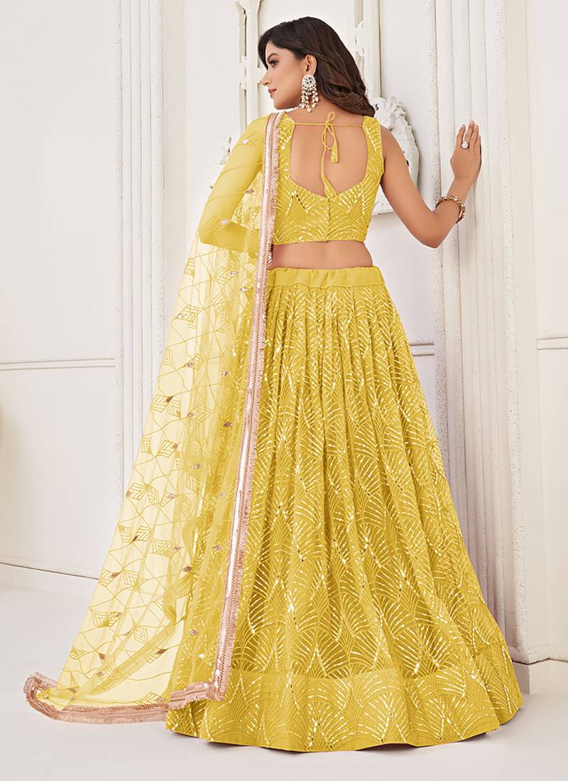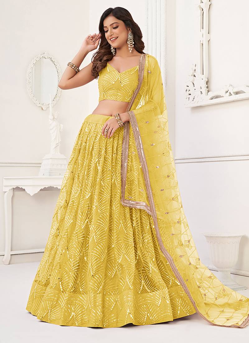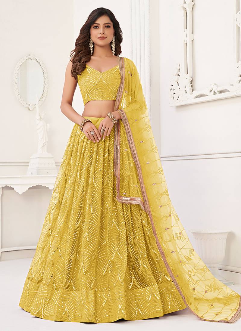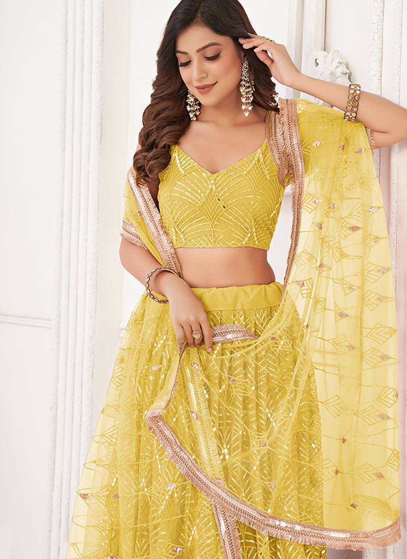 | Product Name | Yellow Thread & Sequins Embroidery Work Net Lehenga | |