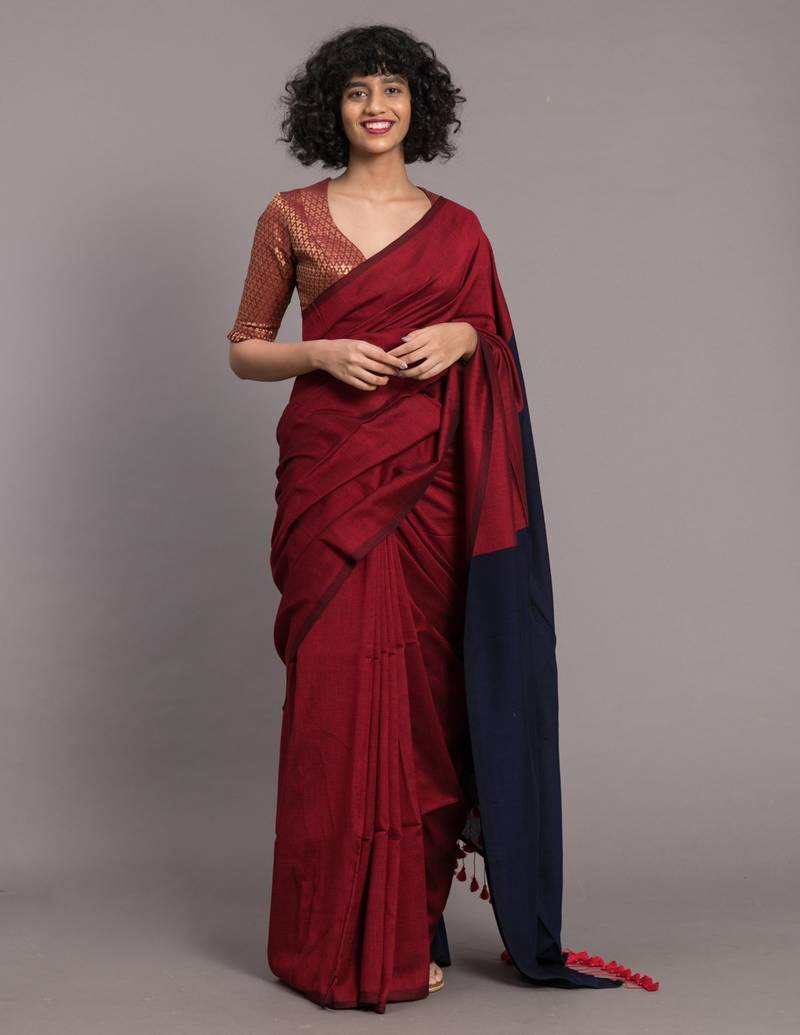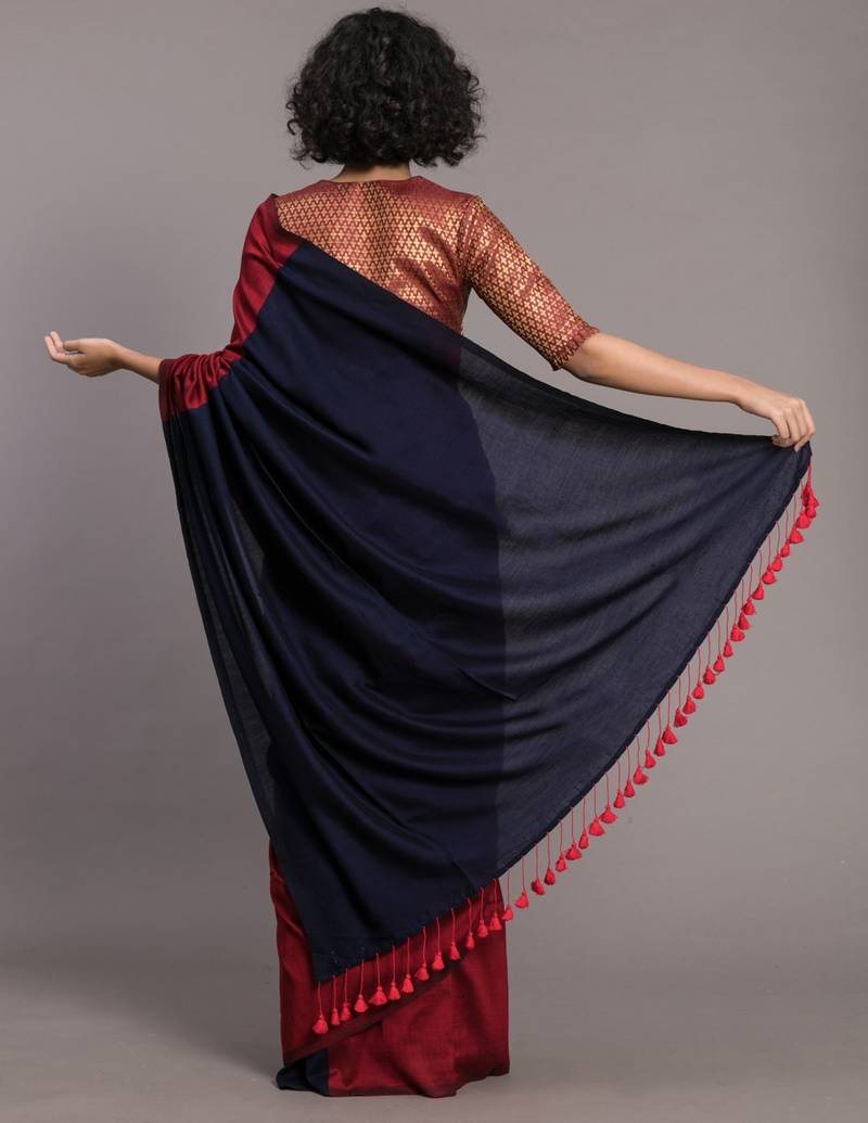 | Product Name | Suta Red & Navy Blue Colorblocked Cotton Blend Saree | |