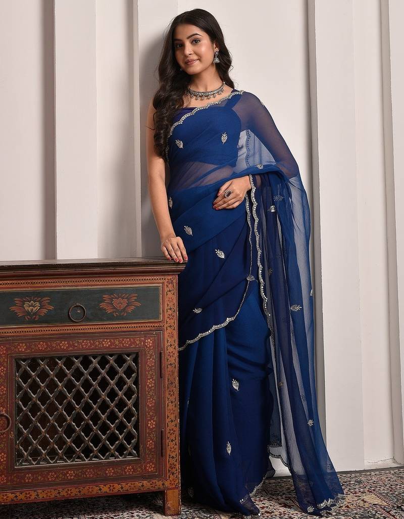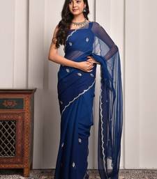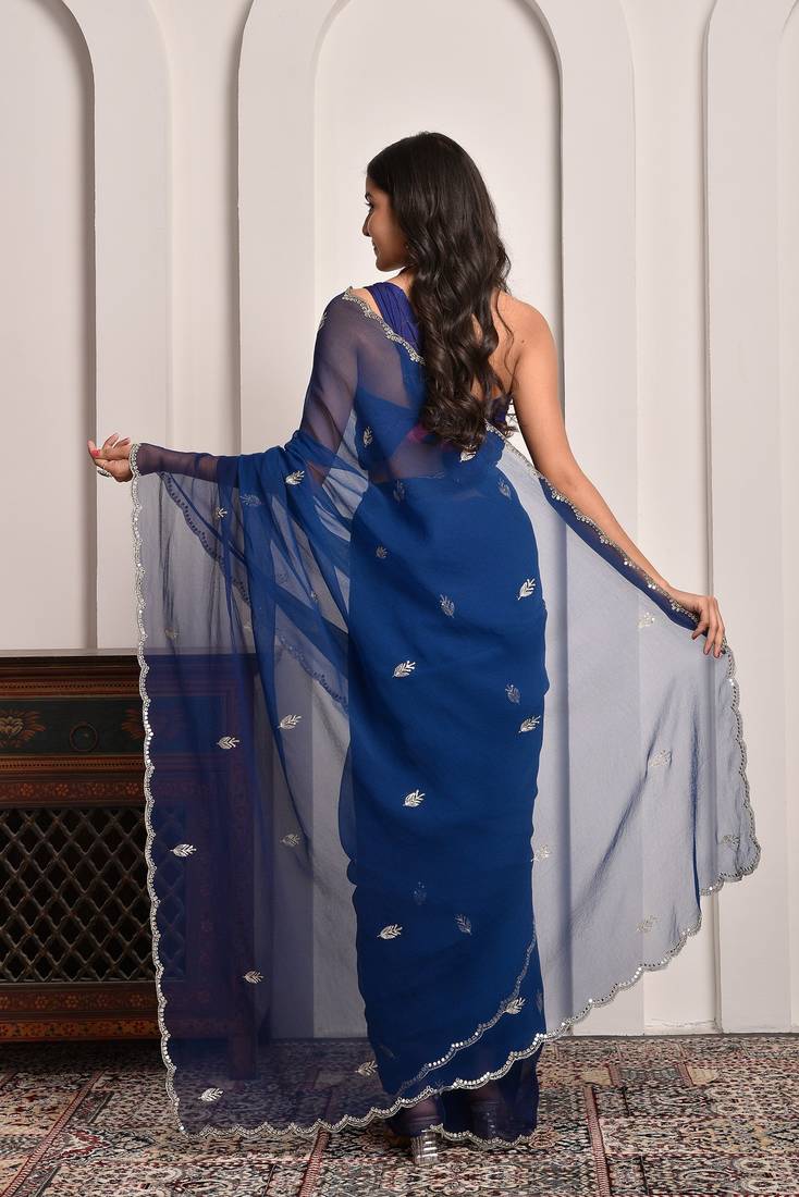 | Product Name | Blue Hand Embellished Mukaish Work Chiffon Saree | |