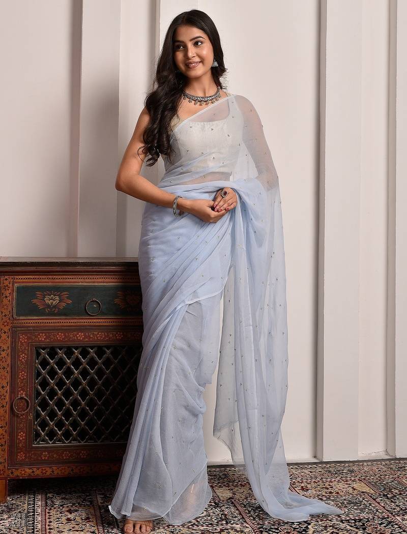 | Product Name | Grey Hand Embellished Sequins Work Chiffon Saree | |