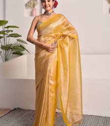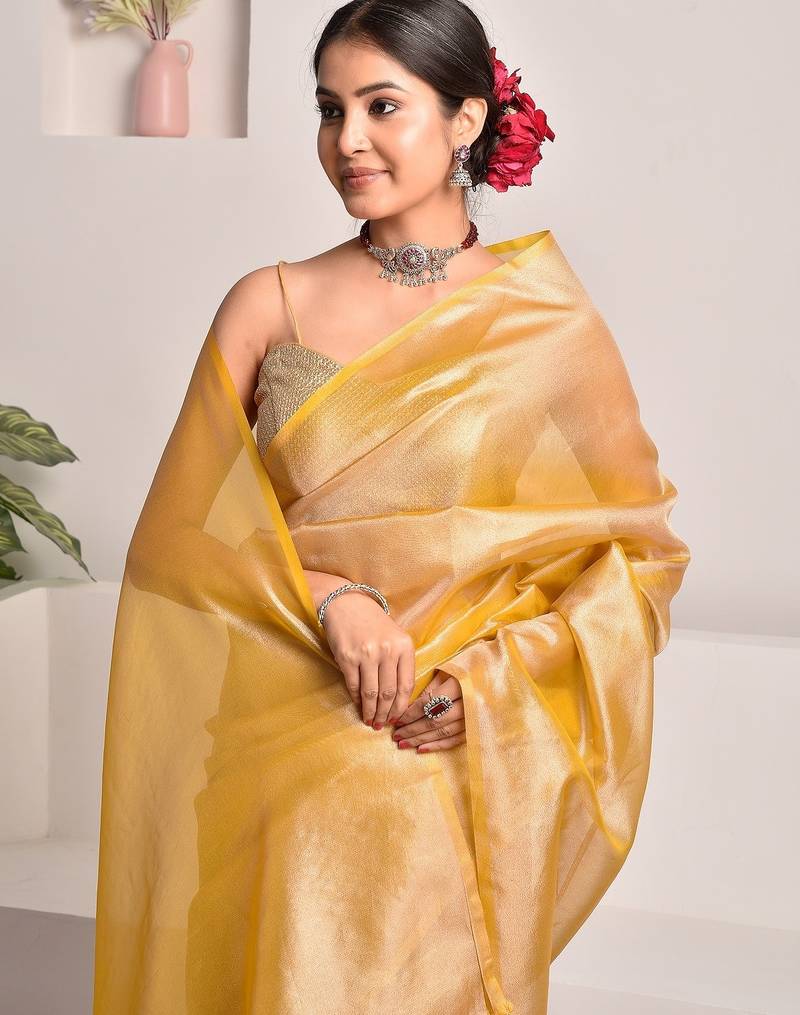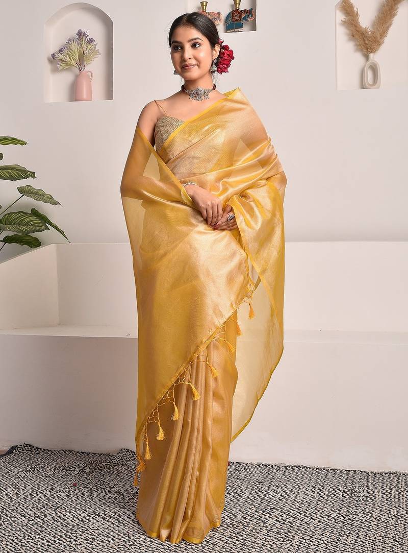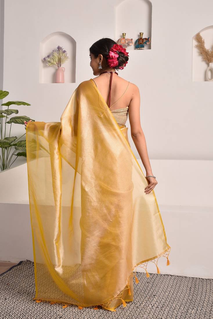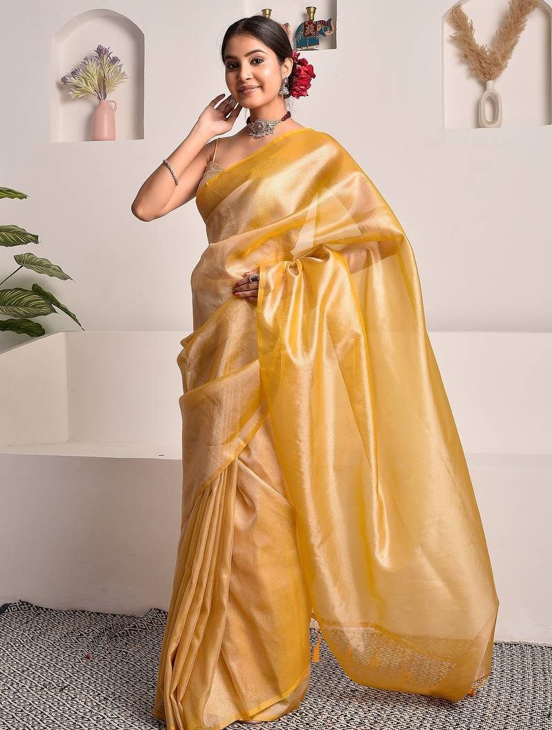 Product Name Mustard Yellow Tissue Saree With Unstitched Blouse Piece