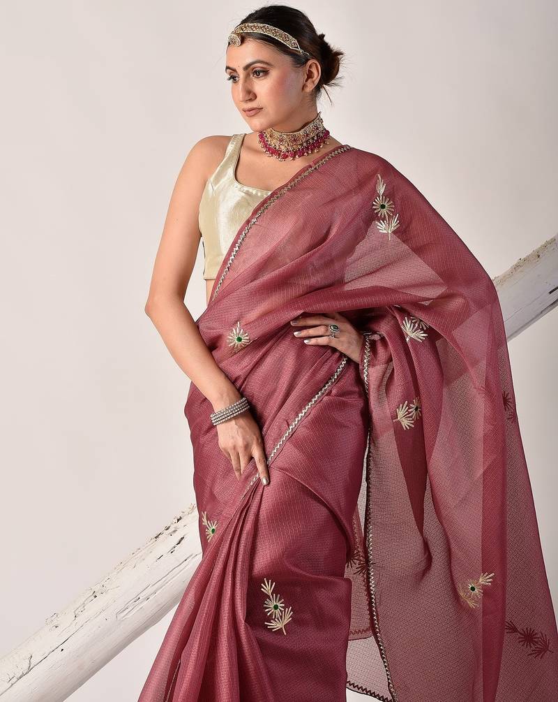 | Product Description | Turn Heads At Any Celebration With Our Onion Pink Kota Doria Gota Patti Saree. Lightweight, Breathable, And Adorned With Intricate Detailing, It Comes With A Matching Blouse Piece For A Graceful Look. |