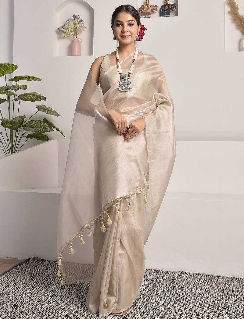 Product Name Pearl White Tissue Saree With Unstitched Blouse Piece