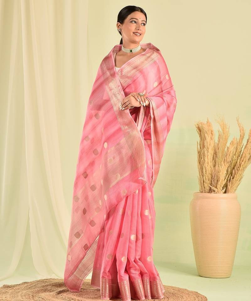 Pink banarasi kota doria saree