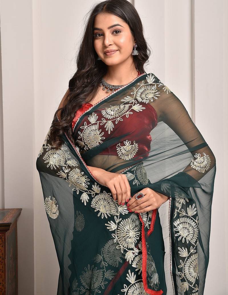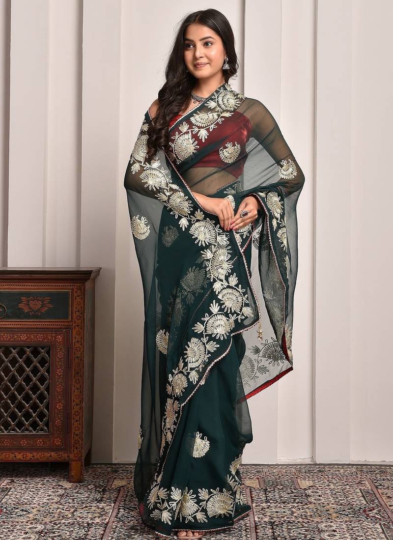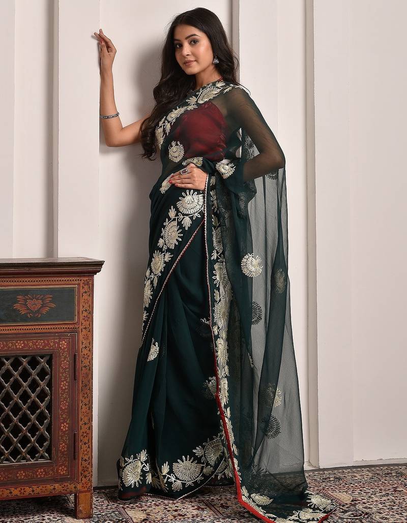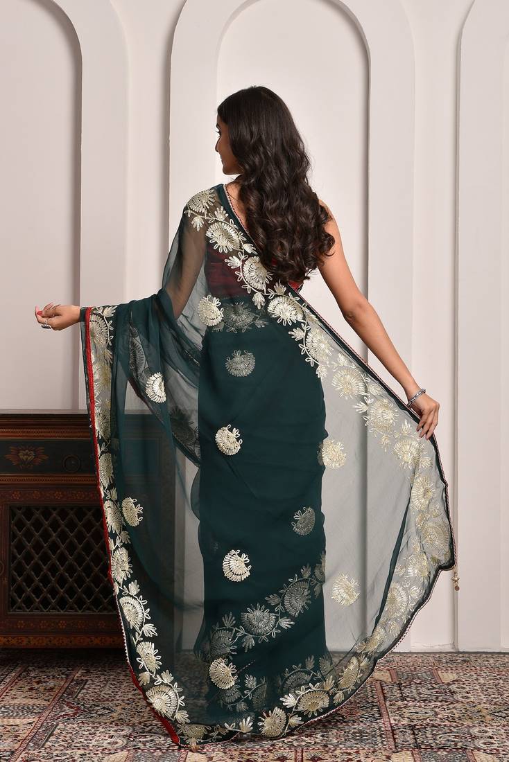 | Product Name | Regal Green Gota Embroidered Georgette Saree With Unstitched Blouse Piece | |