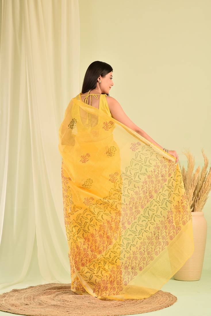 | Product Name | Yellow Hand Block Printed Kota Doria Saree | |