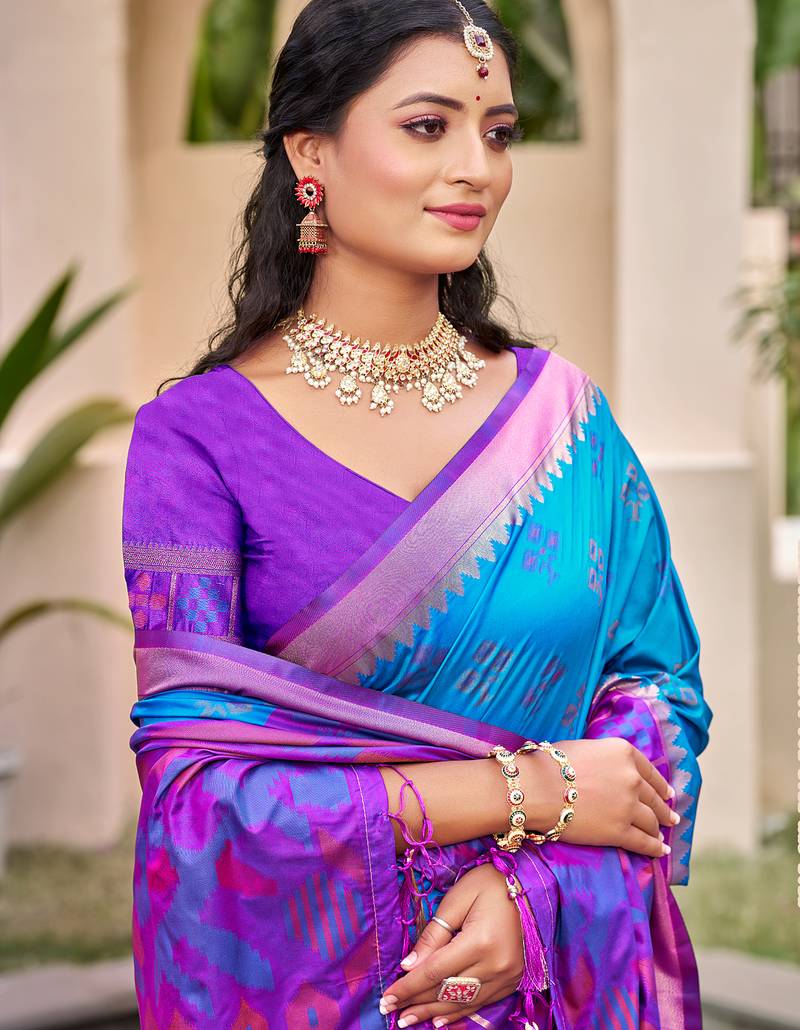 | Product Name | Blue Pochampalli Silk Blend Saree | Elegant Traditional Wedding & Festive Wear Saree | |