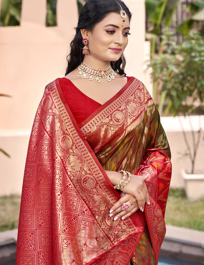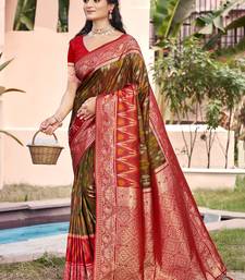 Mhendi green pochampalli silk blend saree | elegant traditional wedding & festive wear saree