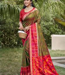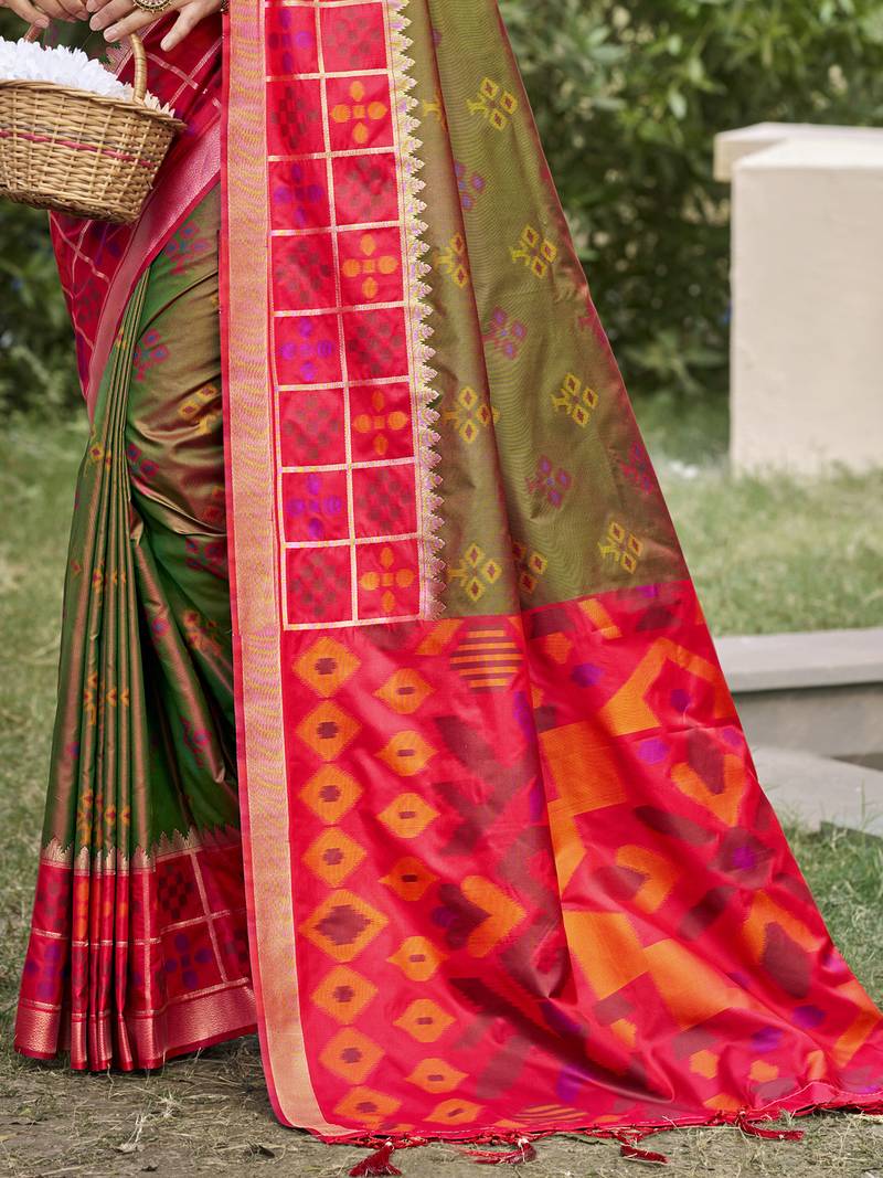 Mhendi green pochampalli silk blend saree | elegant traditional wedding & festive wear saree