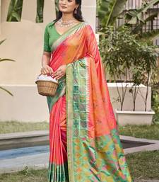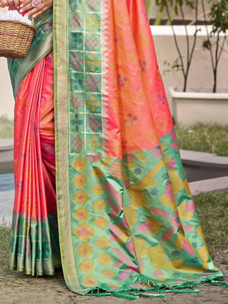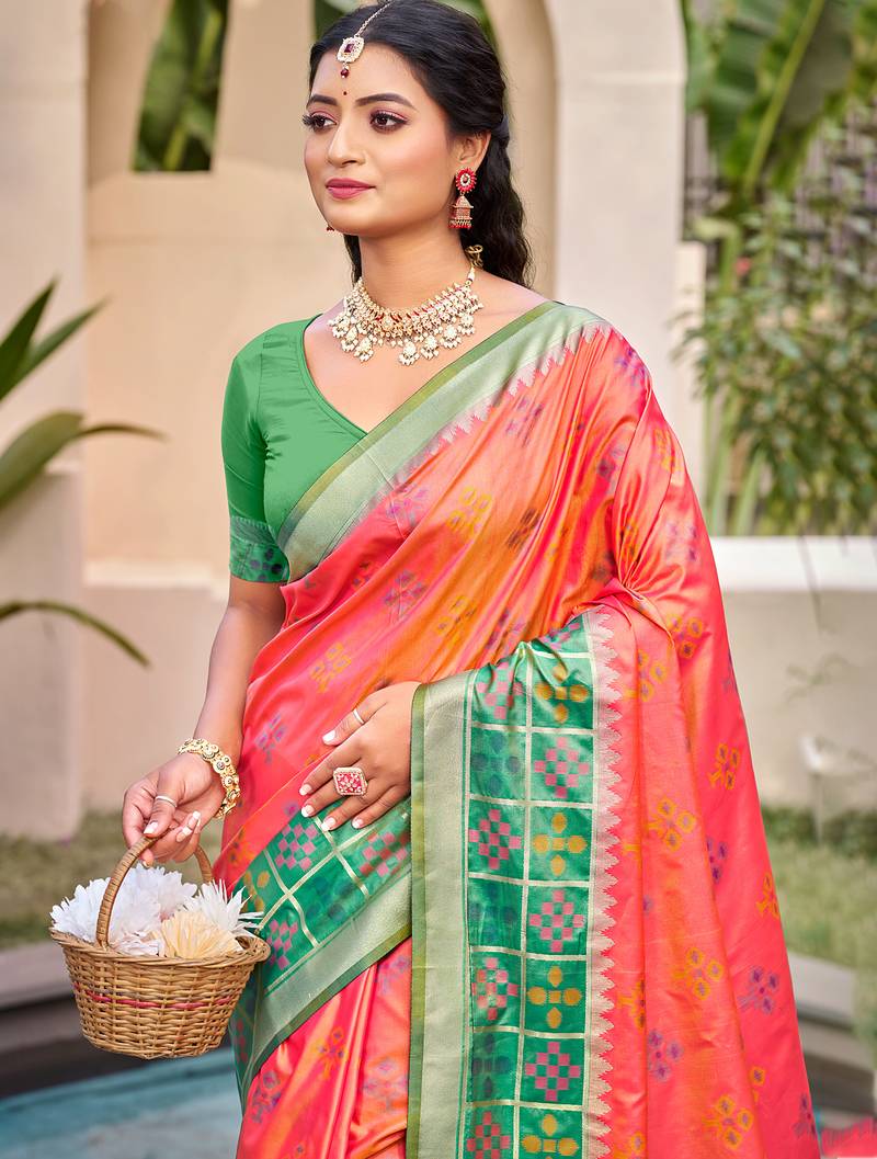Peach pochampalli silk blend saree | elegant traditional wedding & festive wear saree