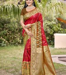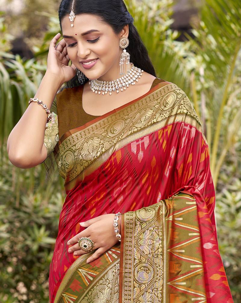 Red pochampalli silk blend saree | elegant traditional wedding & festive wear saree