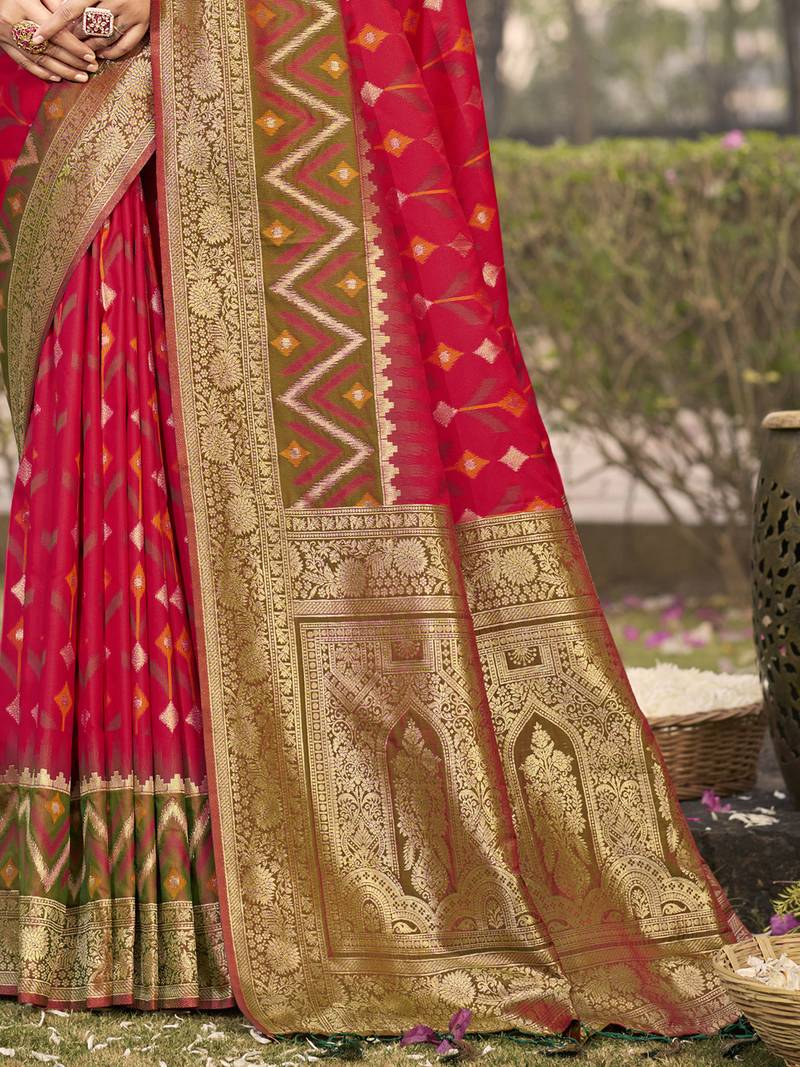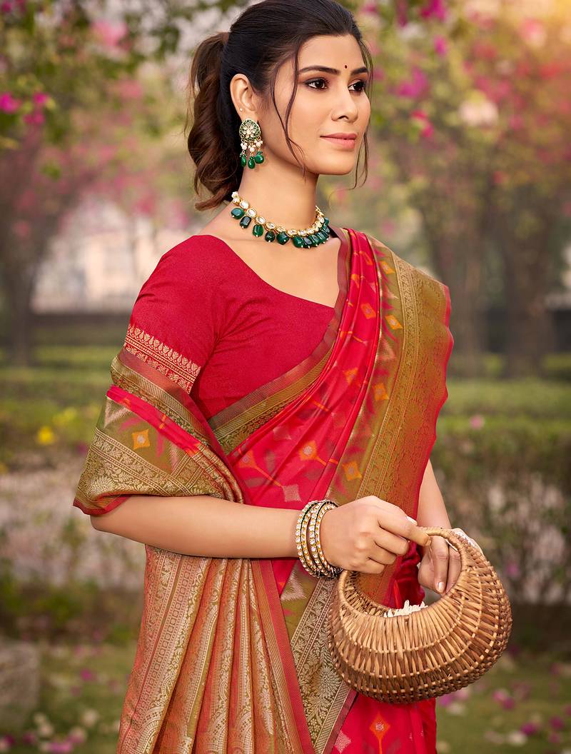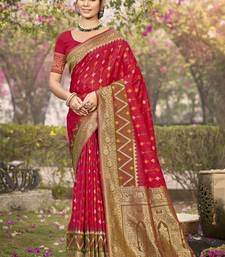 Red pochampalli silk blend saree | elegant traditional wedding & festive wear saree