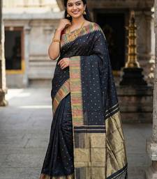 Sutriti designer midnight black & gold woven art silk saree | modern festive wear