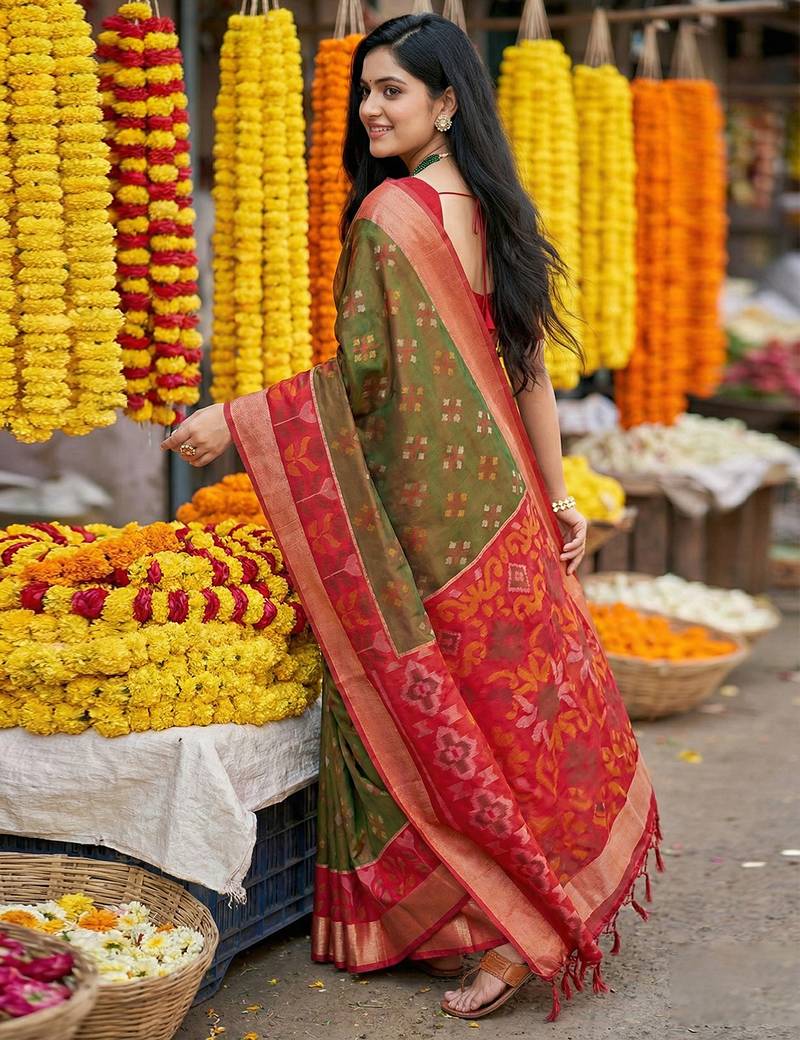 | Product Name | Sutriti Exquisite Brown & Red Pochampalli Soft Silk Saree With Grand Ikat Woven Pallu | |