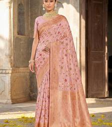 Sutriti graceful pink banarasi silk saree with golden zari woven border & floral jaal – wedding & festive wear