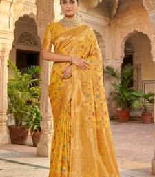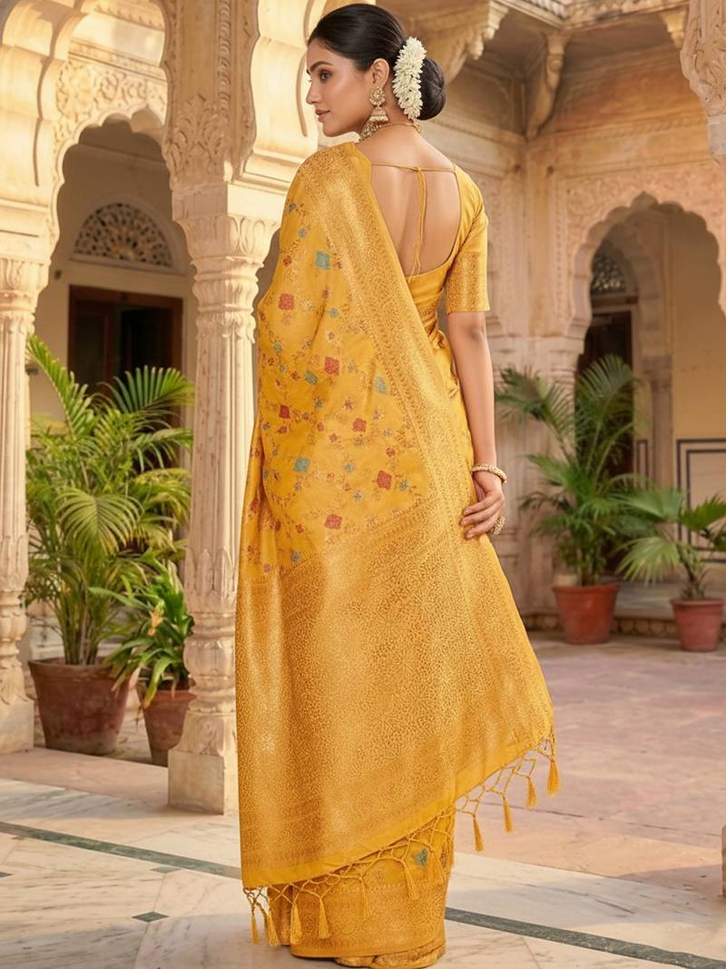 Sutriti graceful yellow banarasi silk saree with golden zari woven border & floral jaal – wedding & festive wear