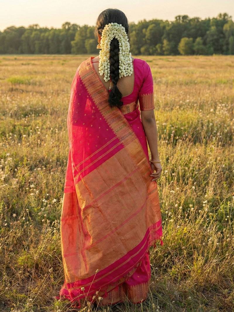Sutriti hot rani pink bridal style soft lichi silk saree | heavy zari woven border & pallu for wedding guests