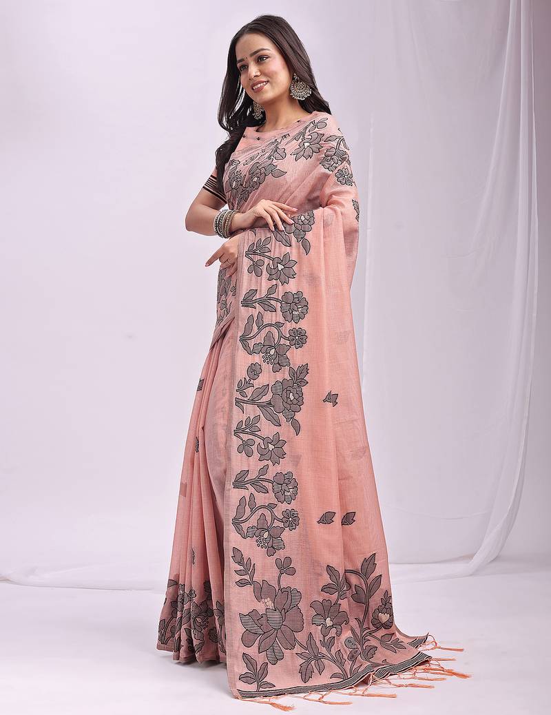 | • | Saree | : | Color- Light Pink / Fabric- Linen |
