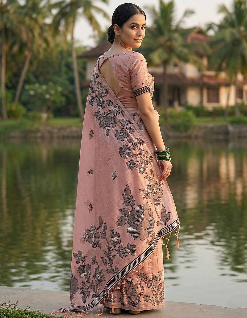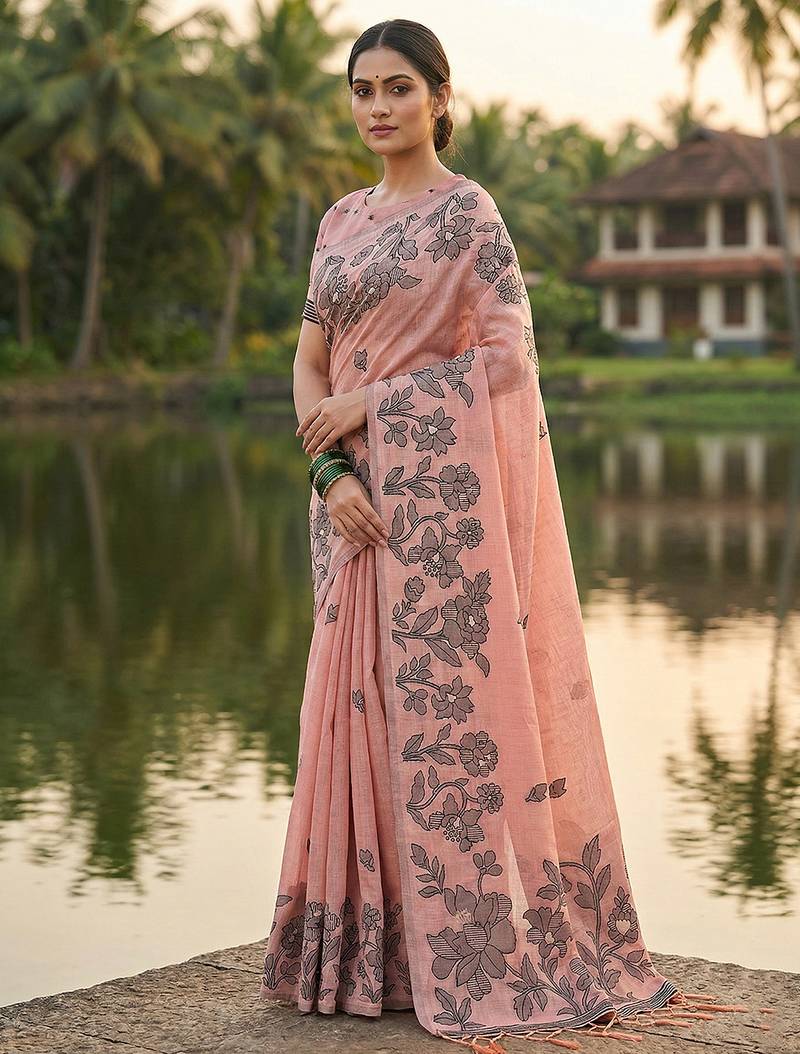 | • | Saree | : | Color- Light Pink / Fabric- Linen |