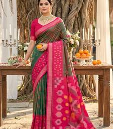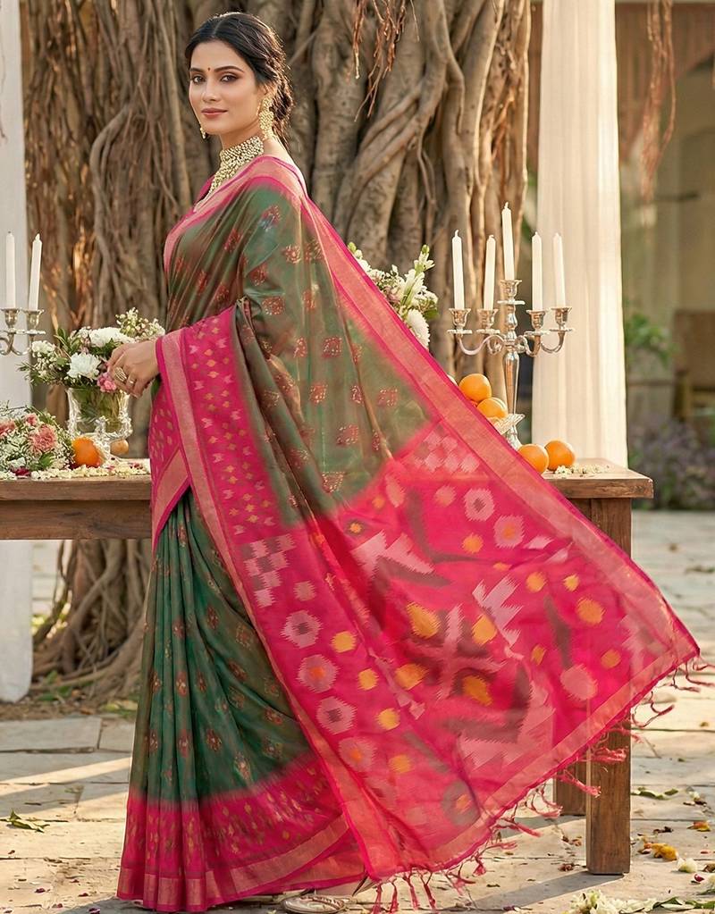 Sutriti olive green pochampalli silk saree | elegant traditional wedding & festive wear saree