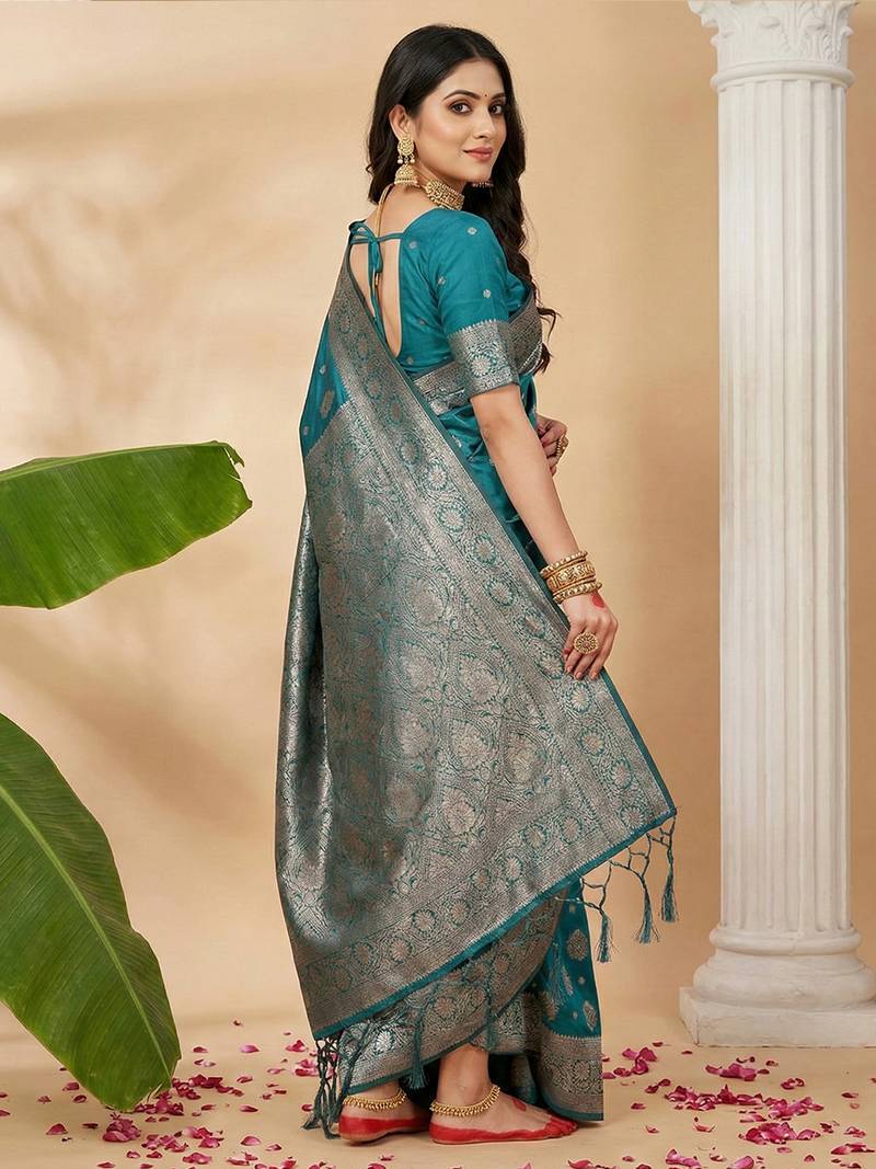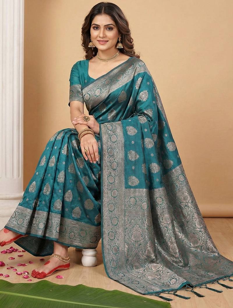 | Product Name | Sutriti Peacock Teal Green Soft Silk Saree With Zari Weaving | |