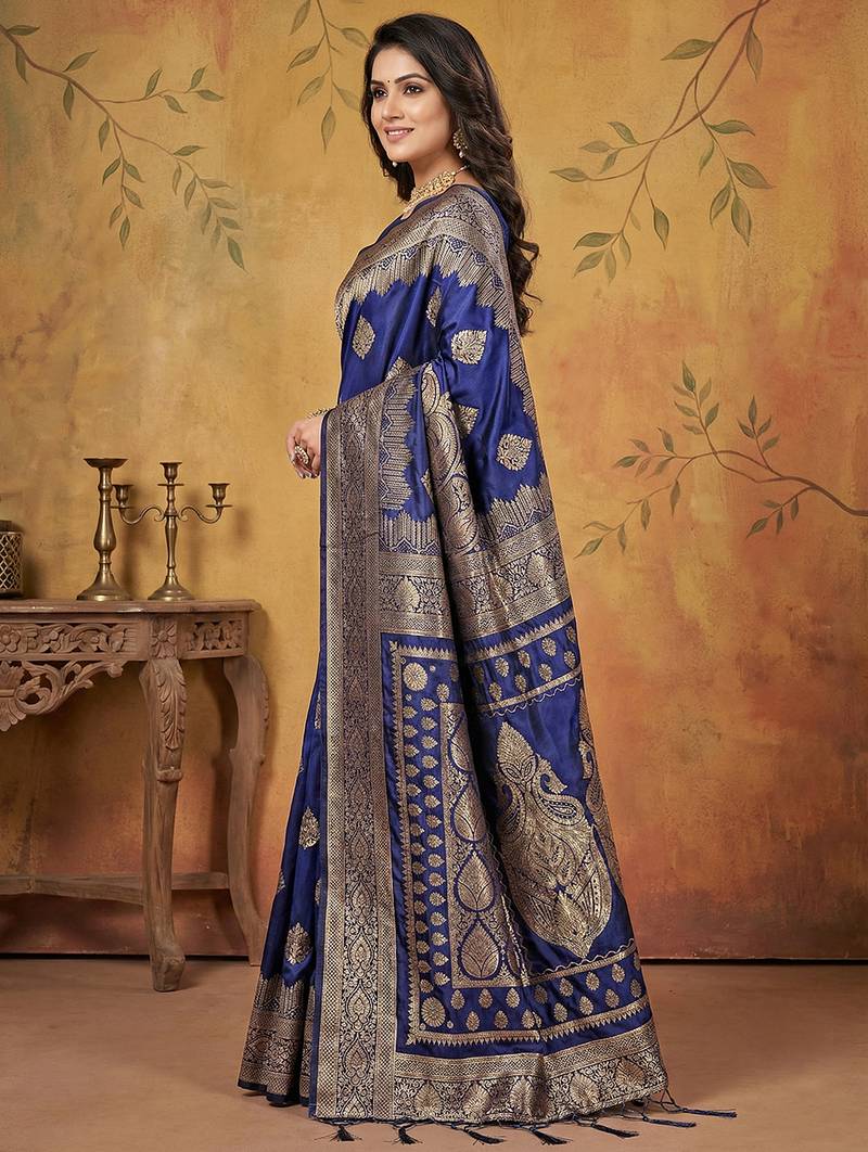 | • | Saree | : | Color- Navy Blue / Fabric- Banarasi Silk |