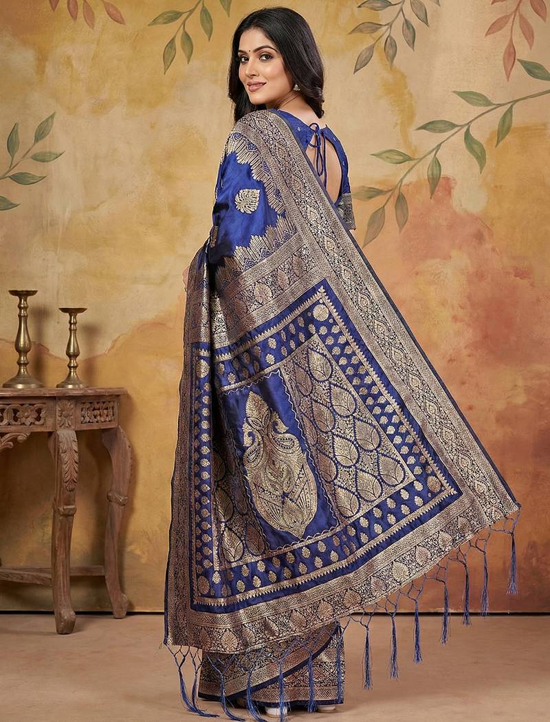 Sutriti royal blue zari woven saree with rich border & heavy pallu | wedding & evening wear