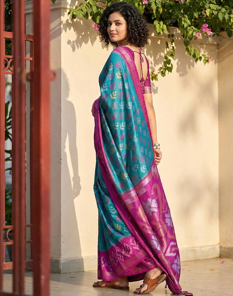 Product Name Sutriti Sky Blue & Magenta Pochampalli Soft Silk Saree With Traditional Ikat Pallu Sari