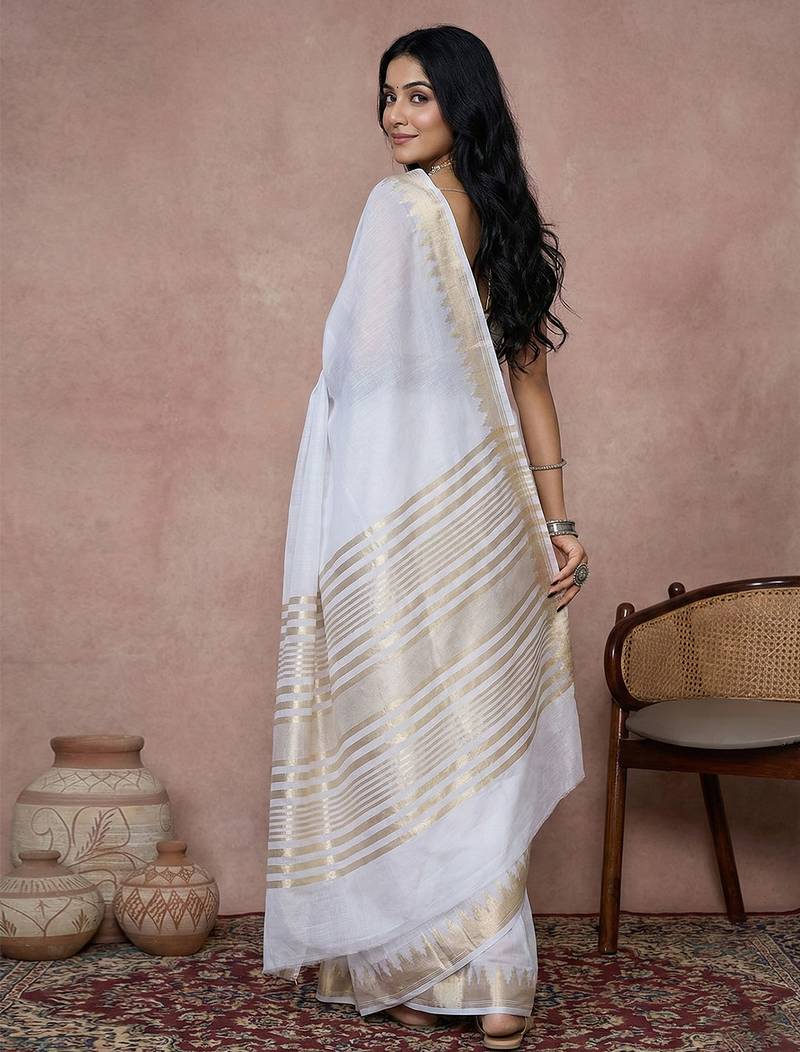 | Product Name | Sutriti Women's White Pure Linen Saree With Gold Zari Border & Blouse Piece | |