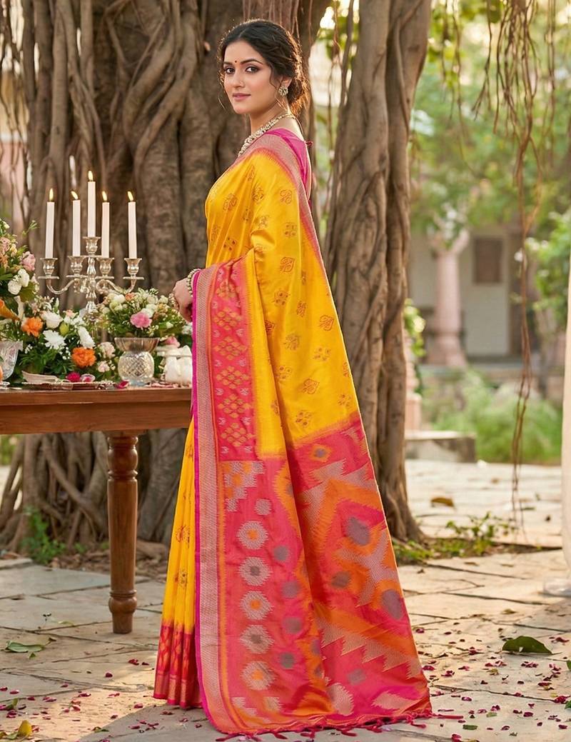 | Product Name | Sutriti Yellow Pochampalli Silk Saree | Elegant Traditional Wedding & Festive Wear Saree | |