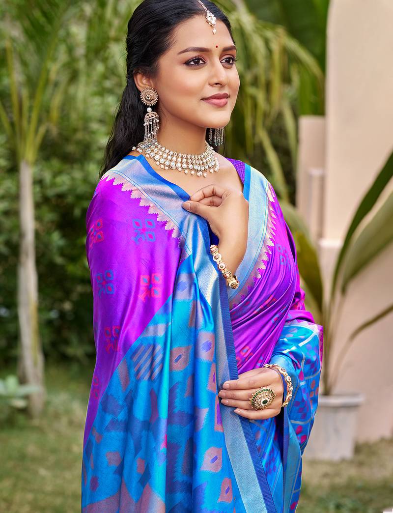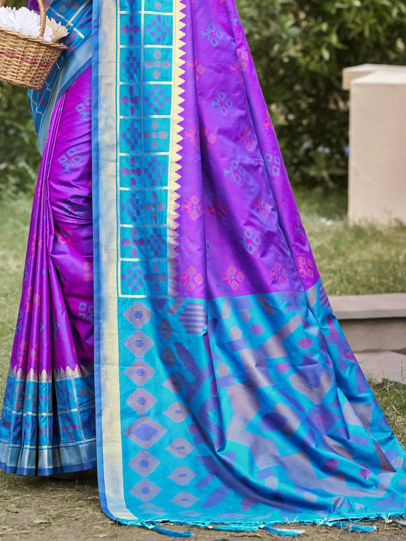 Violet pochampalli silk blend saree | elegant traditional wedding & festive wear saree