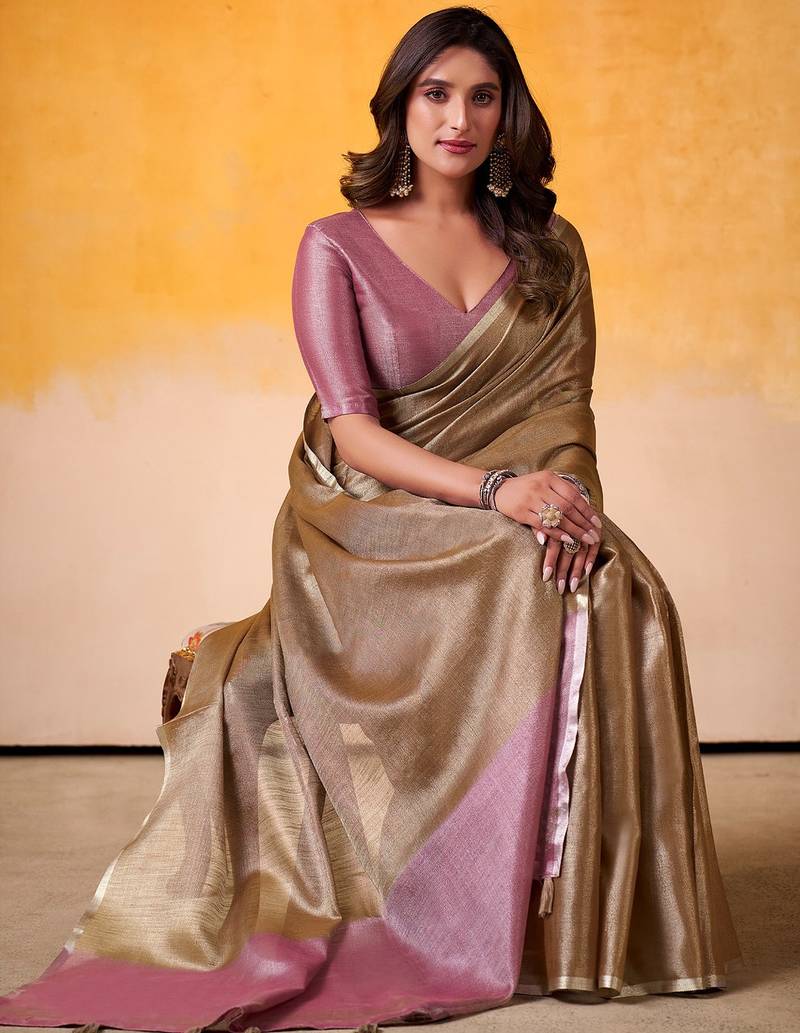 | Product Name | Bronze & Lavender Solid Tissue Linen Saree With Zari Border | |