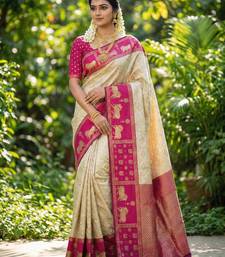 | Product Name | Cream Soft Silk Blend Saree With Pink Nandi Zari Border | |