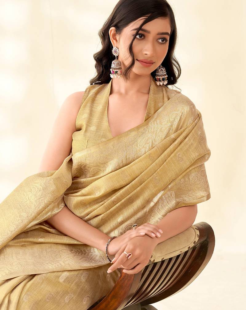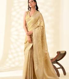 Golden beige woven banarasi tissue silk blend saree