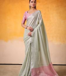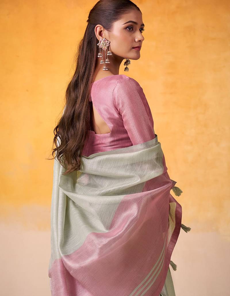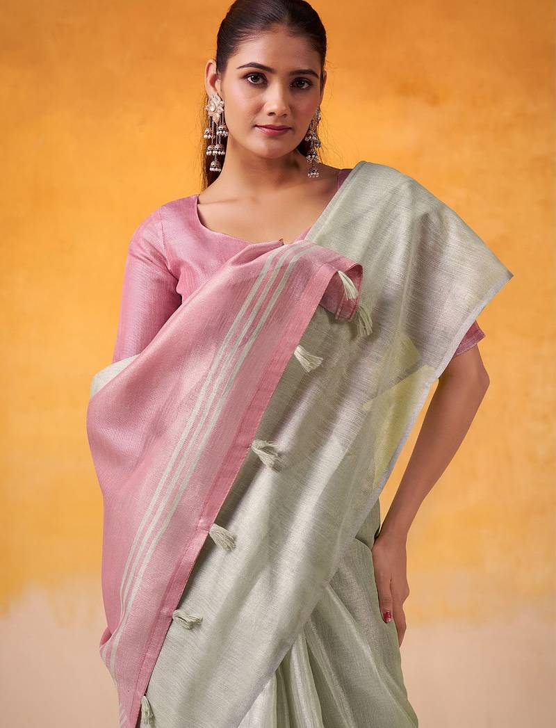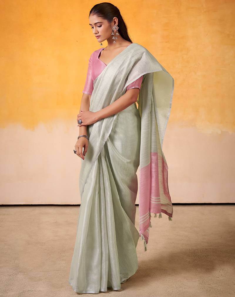 | Product Name | Mint Green & Pink Solid Tissue Linen Saree With Zari Border | |
