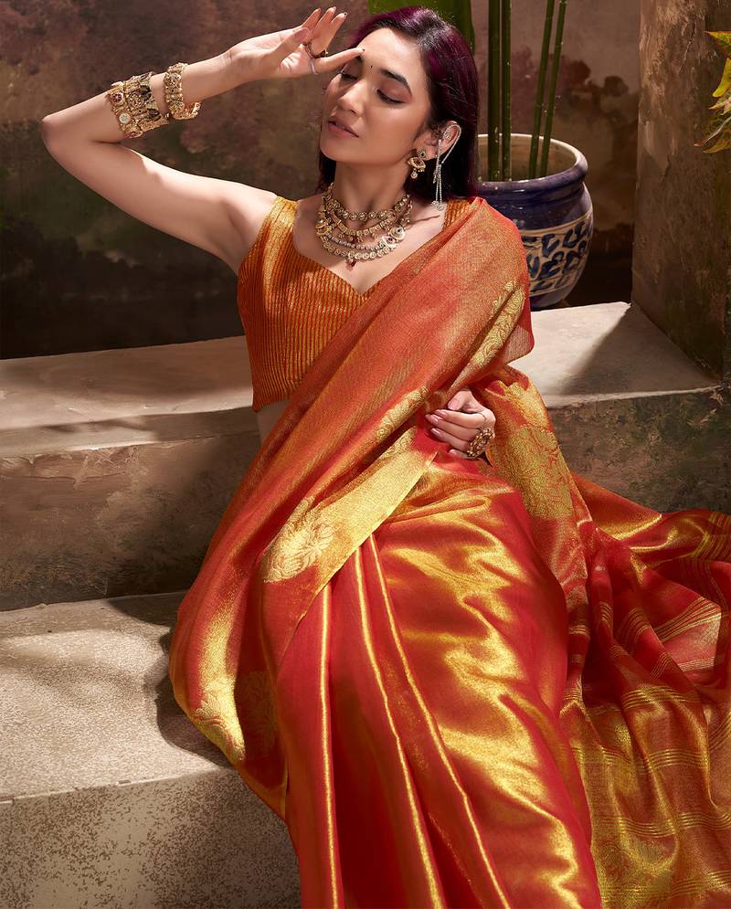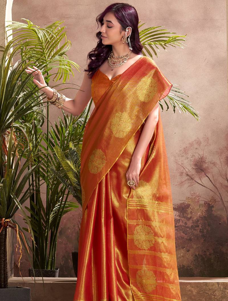 | Product Name | Rust Orange Woven Tissue Silk Blend Saree With Mandala Motifs | |