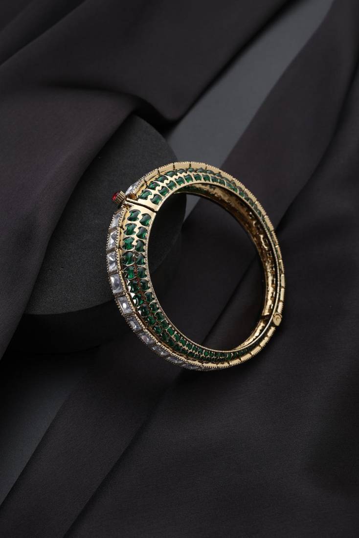 Gold plated green stone kundan bangle