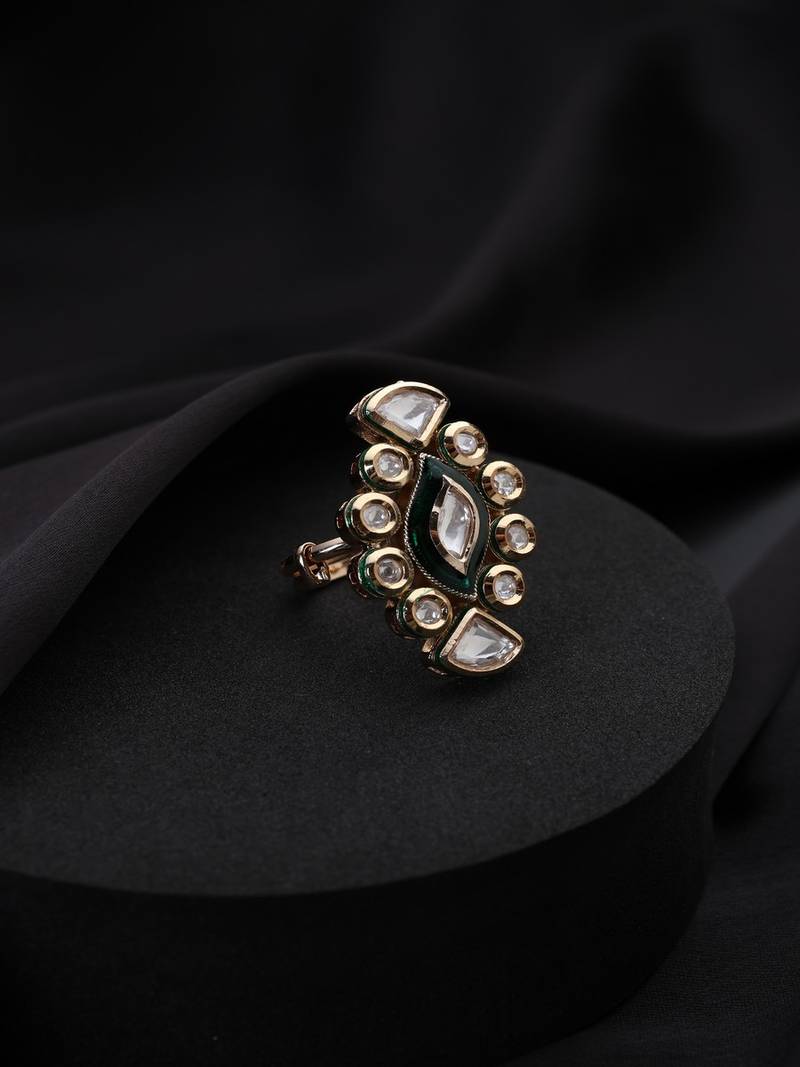 | Product Description | A Timeless Masterpiece, This Gold Plated Polki Ring Showcases A Radiant Green Stone At Its Heart. Intricate, Traditional Polki Work Surrounds The Central Gem, Creating A Dazzling Halo Of Light. Its Antique Finish And Rich Detailing Evoke A Sense Of Heritage And Luxury, Making It A Perfect Statement Piece For Any Special Occasion.