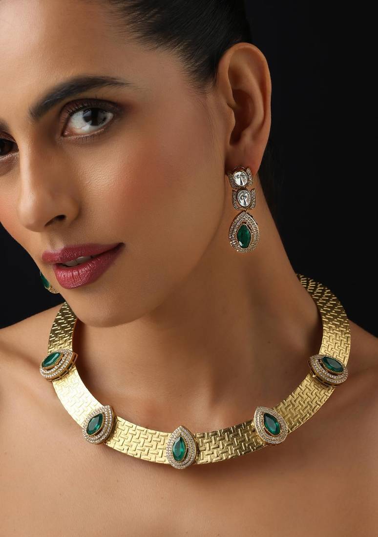 | Product Name | Gold Plated Green Stone Necklace Set | |
