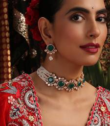 | Product Name | Gold Plated Kundan Green Stones Choker Necklace Set | |