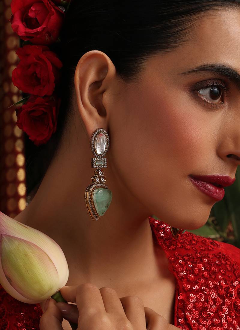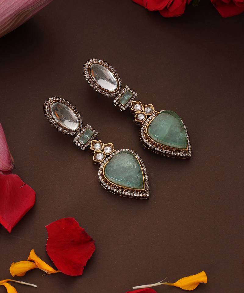 | Product Description | These Gold Plated Kundan Dangler Earrings Are Adorned With Vibrant Green Stones, Exuding Timeless Elegance And Traditional Charm. Featuring Intricate Craftsmanship, They Sway Gracefully To Enhance Festive And Bridal Looks. Perfect For Weddings And Special Occasions, They Add A Sophisticated, Statement Touch To Ethnic Ensembles.