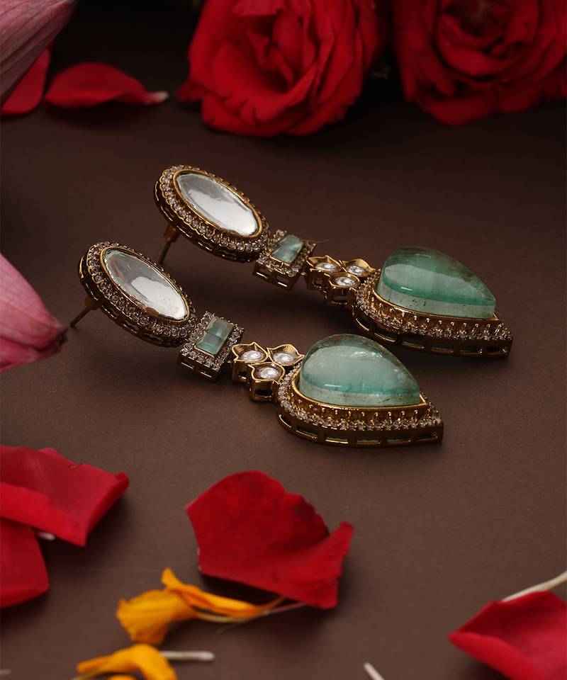 | Product Name | Gold Plated Kundan Turquoise Stones Danglers Earrings | |