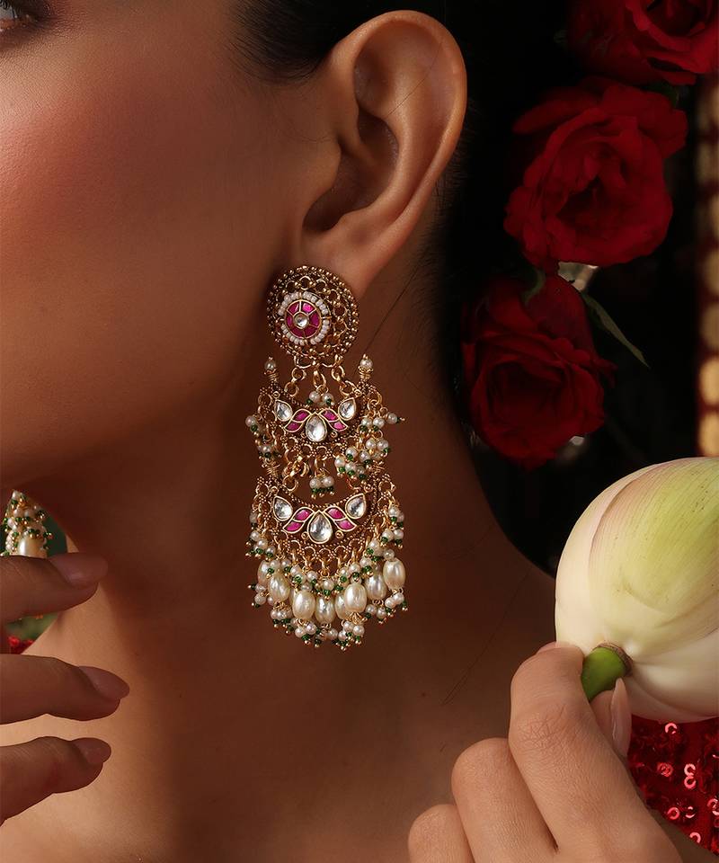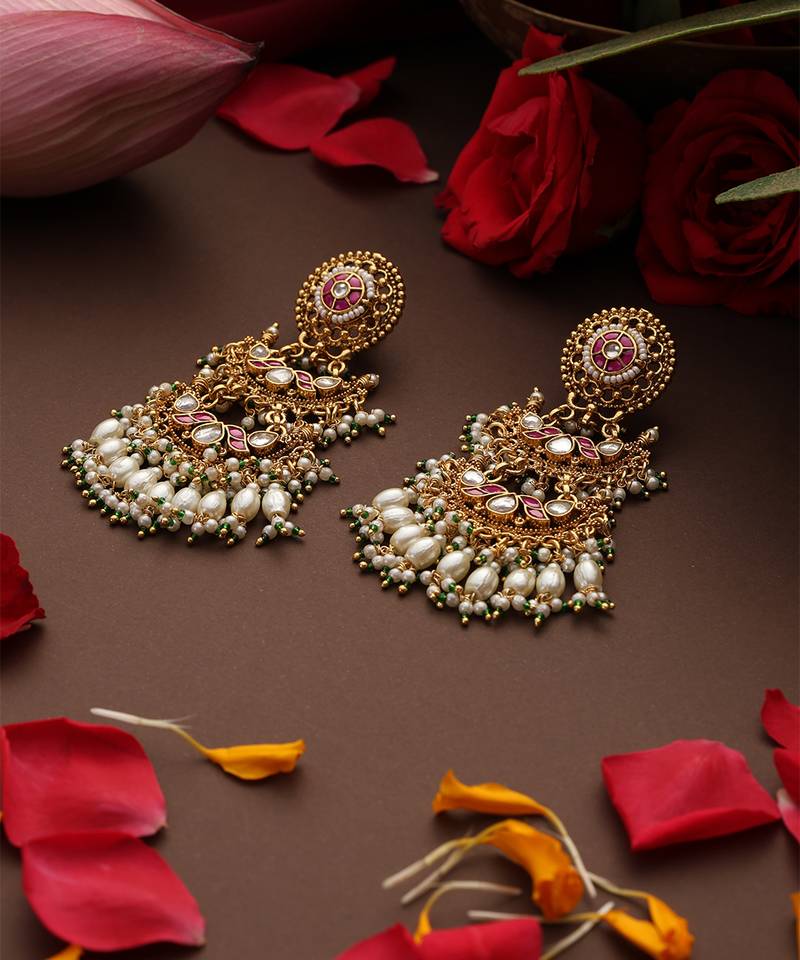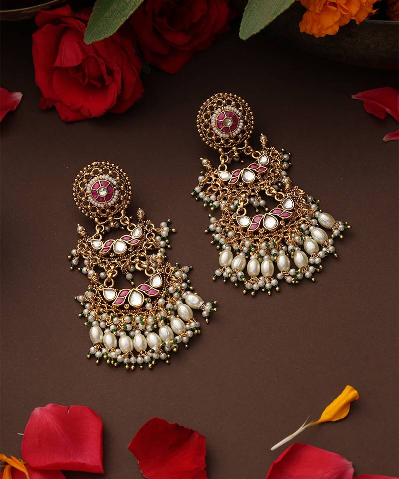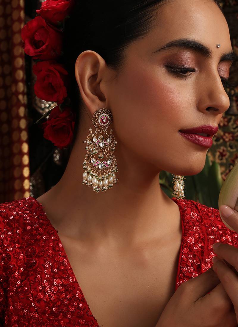 | Product Description | These Gold Plated Kundan Chandbali Earrings Feature Delicate Pink Stones, Radiating Timeless Elegance And Graceful Charm. Crafted With Intricate Detailing, They Perfectly Enhance Traditional And Festive Looks. Ideal For Weddings And Special Occasions, They Add A Sophisticated, Statement Touch To Ethnic Ensembles.