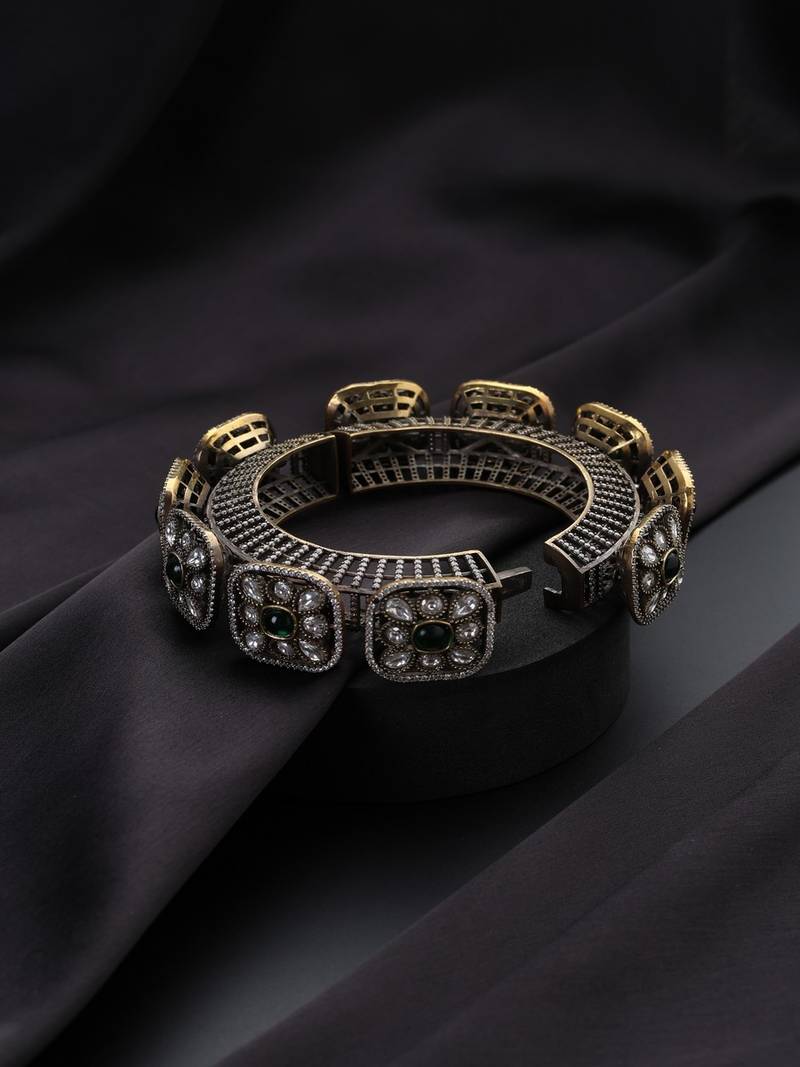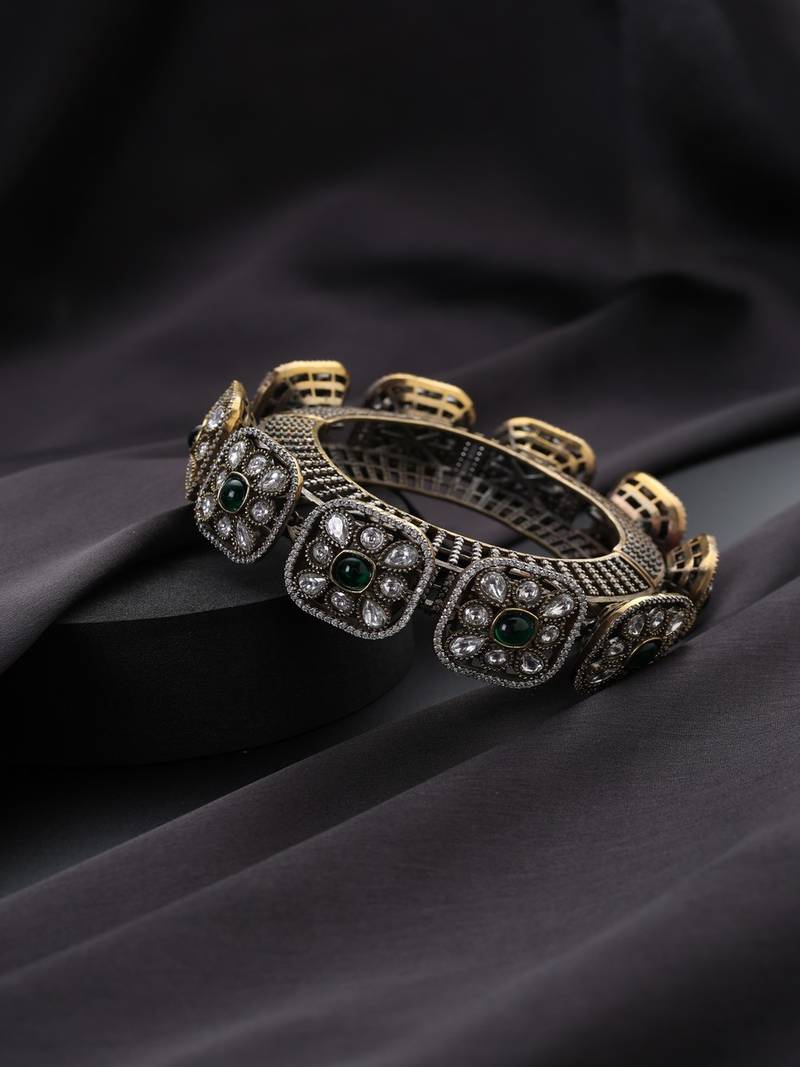| Product Name | Gold Plated Kundan Green Stones Bangle | |