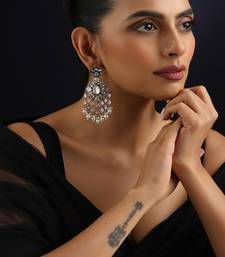 Experience The Epitome Of Elegance With These Stunning Gold Plated Polki Dangler Earrings. Cascading With Intricate Polki Work And A Radiant Gold Finish, These Earrings Sway With Every Step, Catching The Light Beautifully. Their Elaborate Design And Luxurious Feel Make Them The Perfect Statement Piece For Weddings And Grand Celebrations