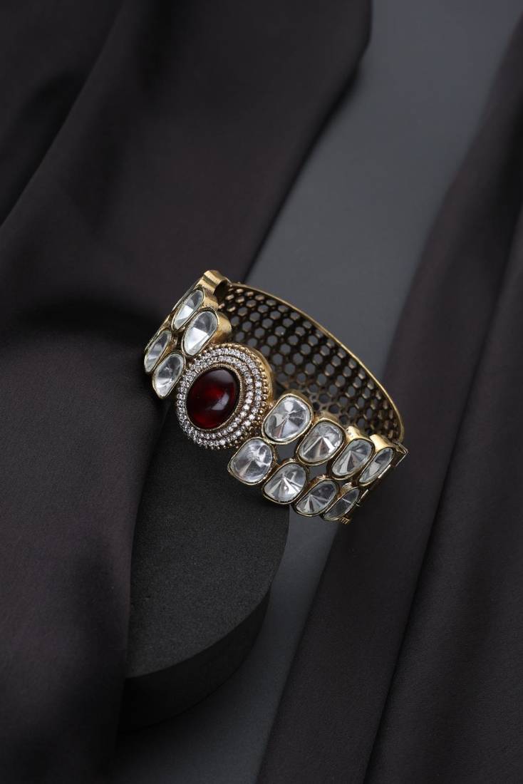 | Product Description | These Gold Plated Red Stone Polki Bracelets Exude Timeless Elegance And Royal Charm. Featuring Intricate Polki Work With Striking Red Stones, They Are Finished With Rich Gold Plating For A Luxurious Touch. Perfect For Weddings, Festive Occasions, And Special Celebrations, They Beautifully Complement Both Traditional And Contemporary Ensembles.