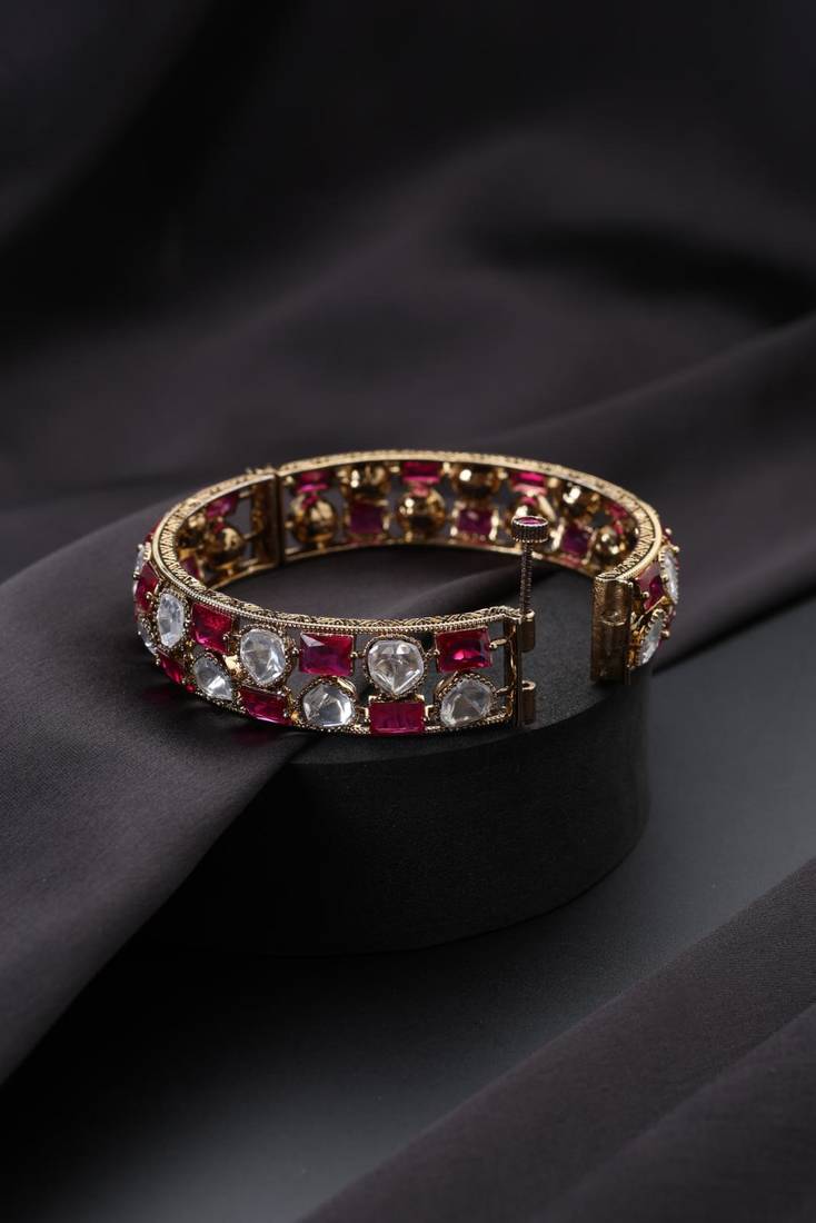 | Product Description | These Gold Plated Red Stone Polki Bracelets Exude Timeless Elegance And Royal Charm. Featuring Intricate Polki Work With Striking Red Stones, They Are Finished With Rich Gold Plating For A Luxurious Touch. Perfect For Weddings, Festive Occasions, And Special Celebrations, They Beautifully Complement Both Traditional And Contemporary Ensembles.