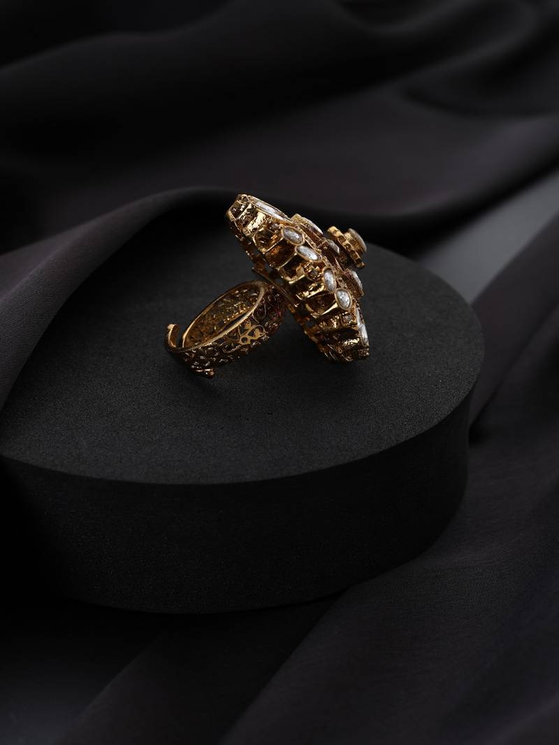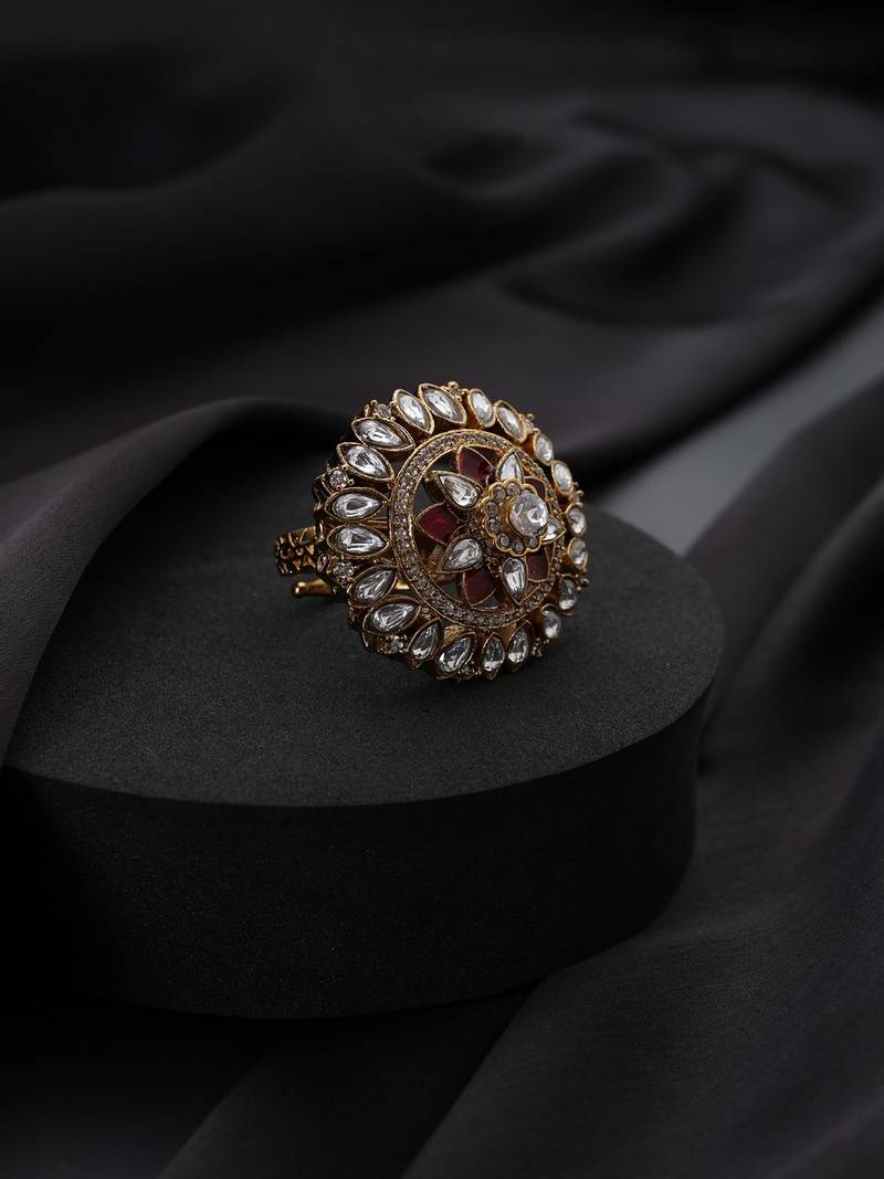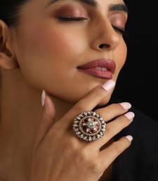 | Product Description | A Timeless Masterpiece, This Gold Plated Polki Ring Showcases A Radiant Red Stone At Its Heart. Intricate, Traditional Polki Work Surrounds The Central Gem, Creating A Dazzling Halo Of Light. Its Antique Finish And Rich Detailing Evoke A Sense Of Heritage And Luxury, Making It A Perfect Statement Piece For Any Special Occasion.