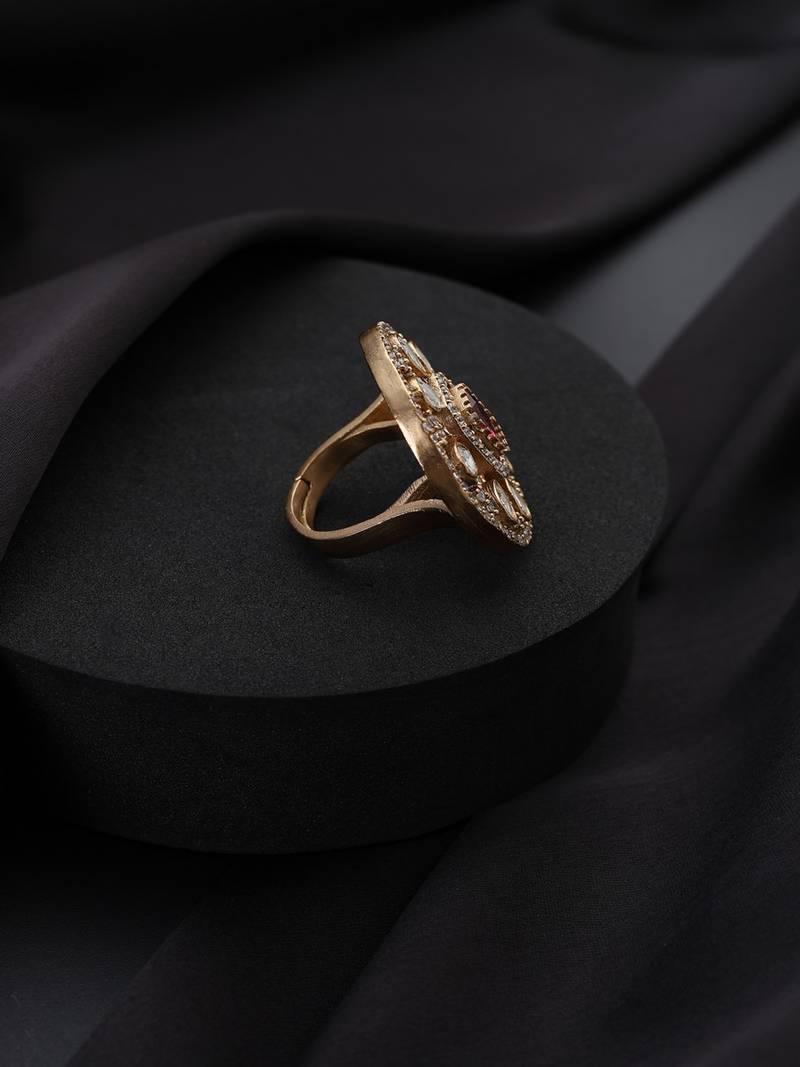 | Product Description | A Timeless Masterpiece, This Gold Plated Polki Ring Showcases A Radiant Red Stone At Its Heart. Intricate, Traditional Polki Work Surrounds The Central Gem, Creating A Dazzling Halo Of Light. Its Antique Finish And Rich Detailing Evoke A Sense Of Heritage And Luxury, Making It A Perfect Statement Piece For Any Special Occasion.