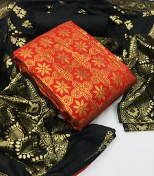 Red jacquard banarasi silk salwar unstitched